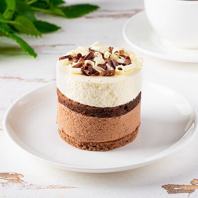 Элегантное трио белого, молочного и чёрного шоколада в сочетании нежного шоколадного бисквита