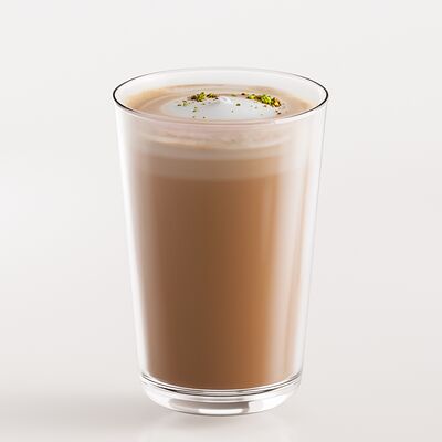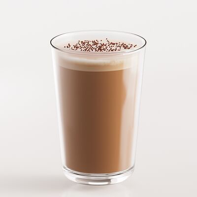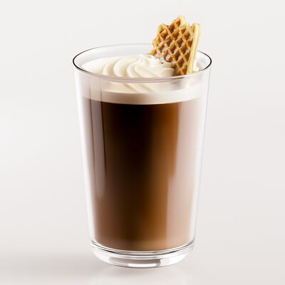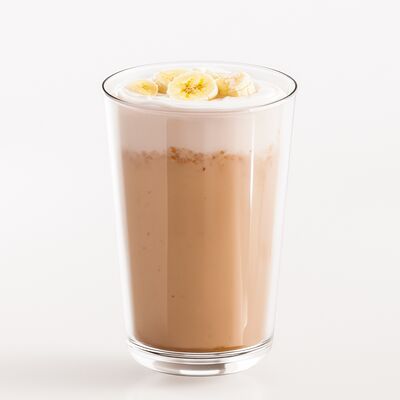 Эспрессо, молоко, сироп банан, сироп белый шоколад, сливки