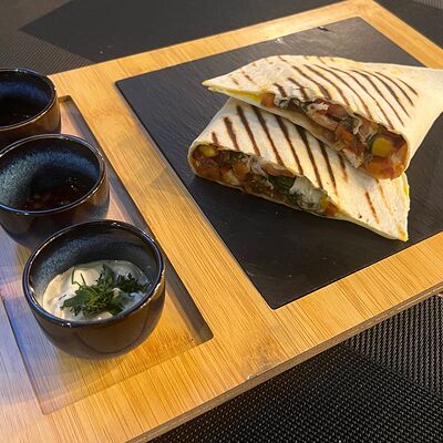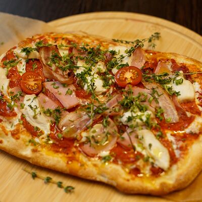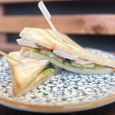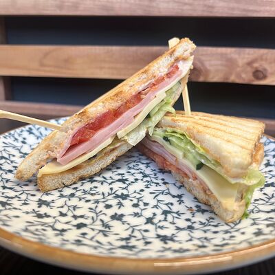 Тестовый хлеб, ветчина, сыр, помидор, огурец
