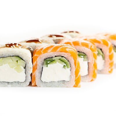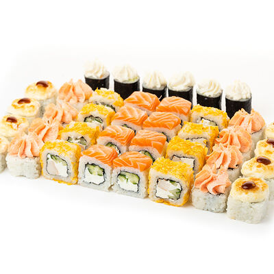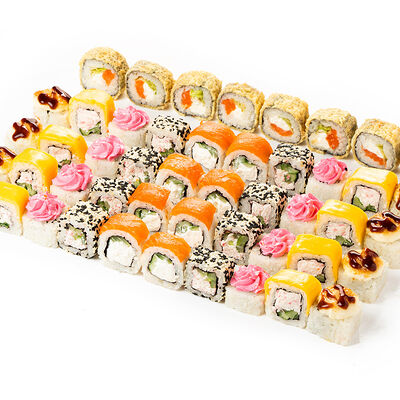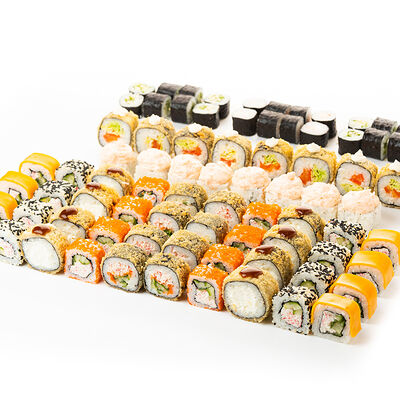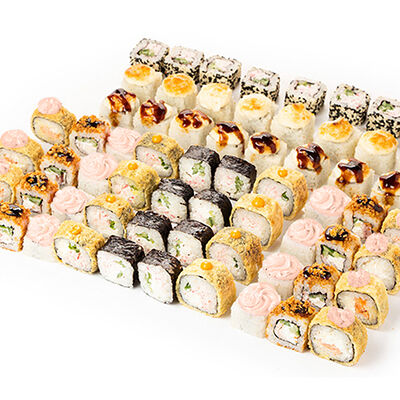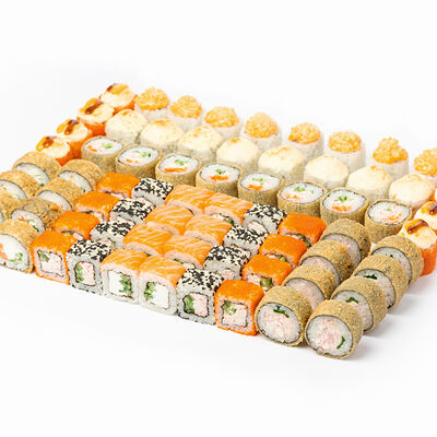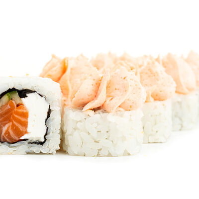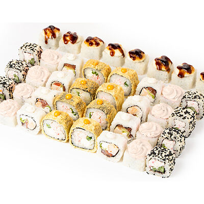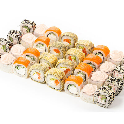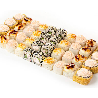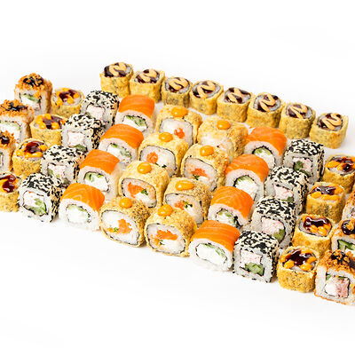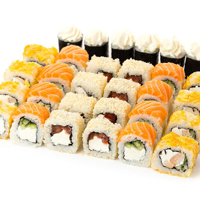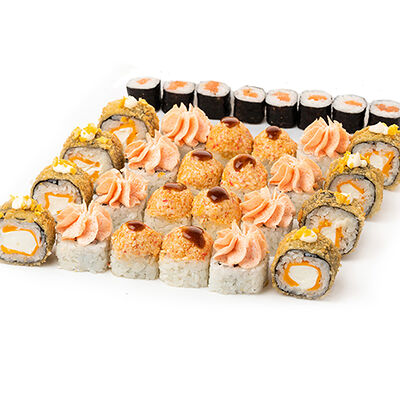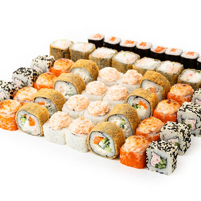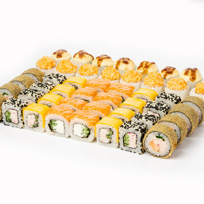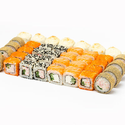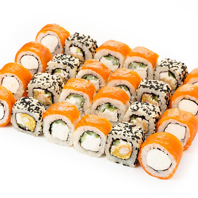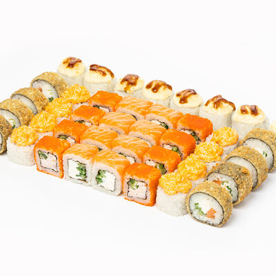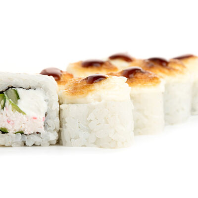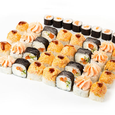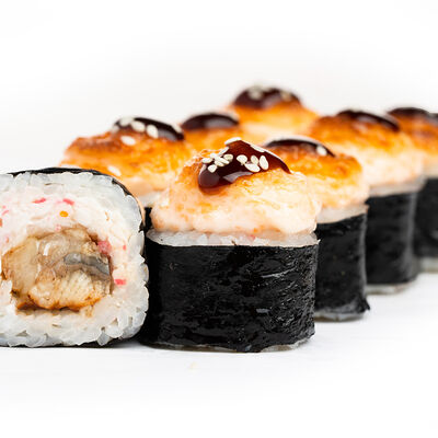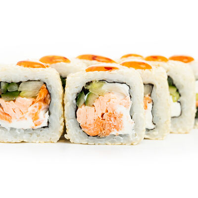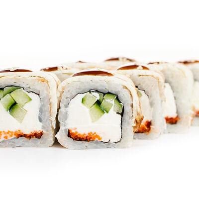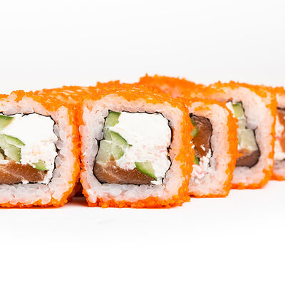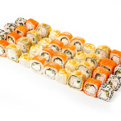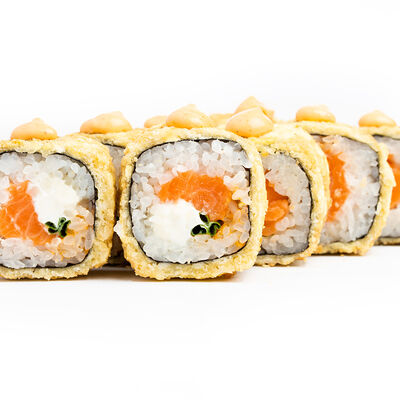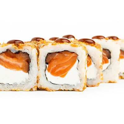 Краб микс, хрустящий огурчик, панко и кляр темпура, икра тобико, рис