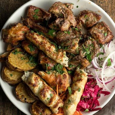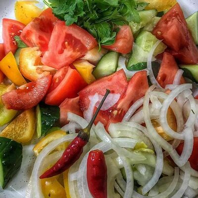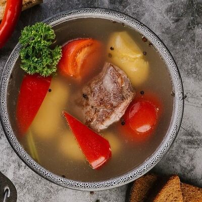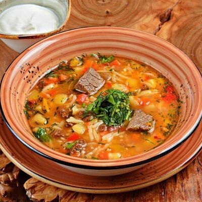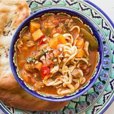 Говядина, масло растительное, морковь, лук репчатый, болгарский перец, фасоль стручковая, сельдерей, капуста пекинская, базилик сушеный, кинза, укроп, бадьян, зира, томатная паста, помидоры свежие, перец чёрный молотый, яйцо, мука пшеничная, вода, соль
