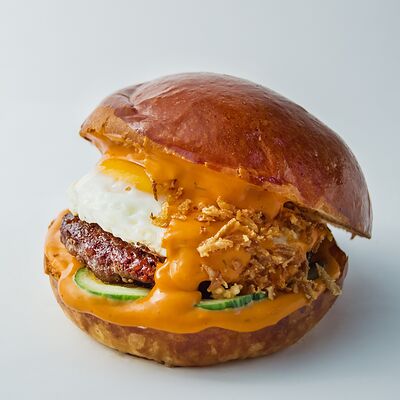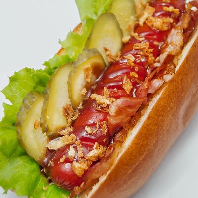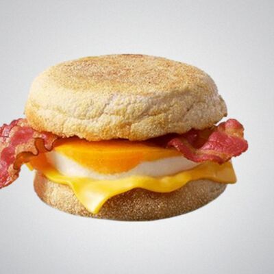 Булочка английский маффин, бекон, яйцо, сыр чеддер, соус макси, бекон