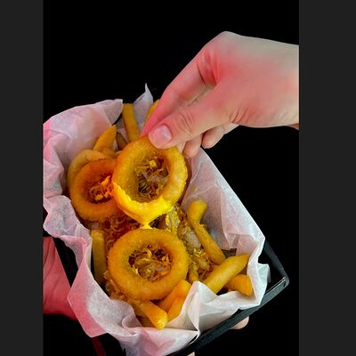Облепиховое пюре, лимонный сок, газированная вода, лёд. Напиток собственного приготовления