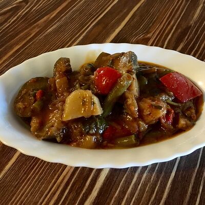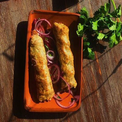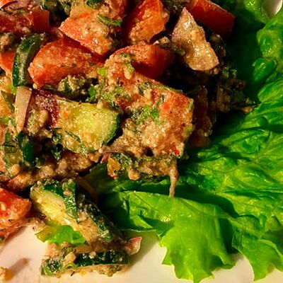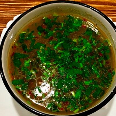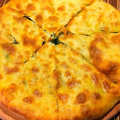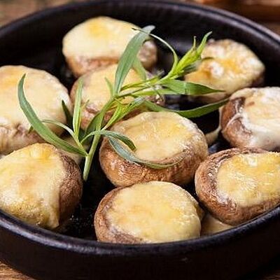 Тесто дрожжевое, шампиньоны, специи, зелень, лук