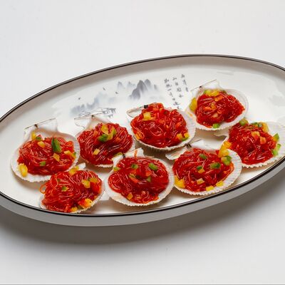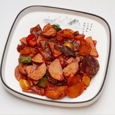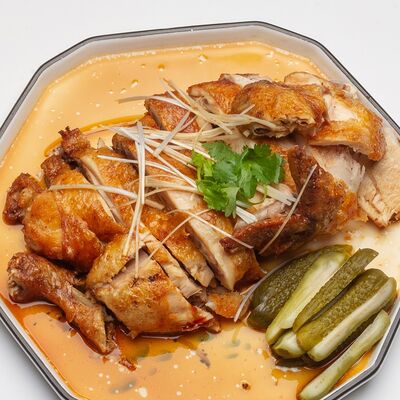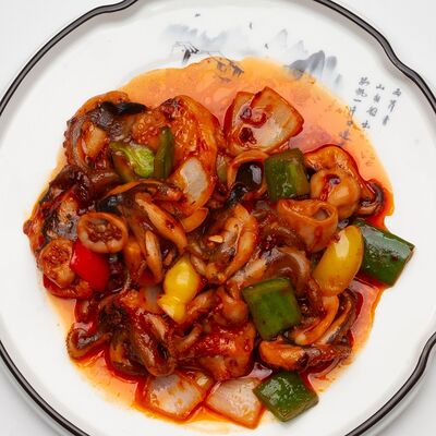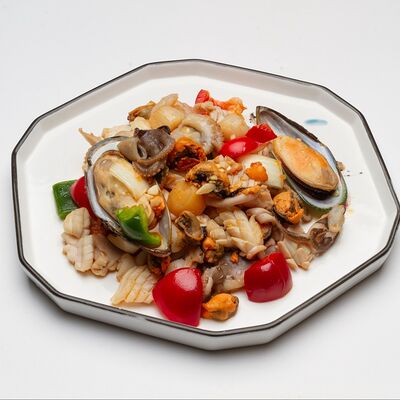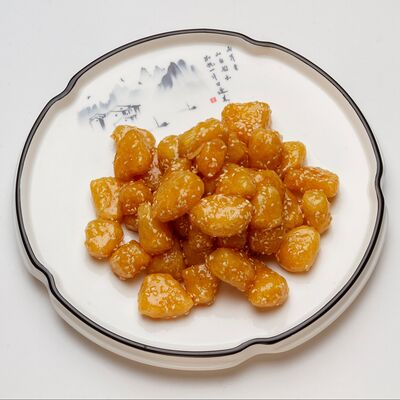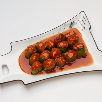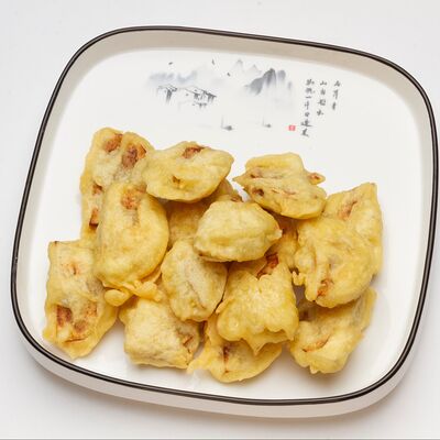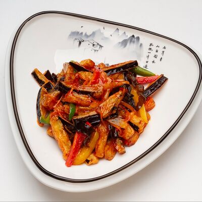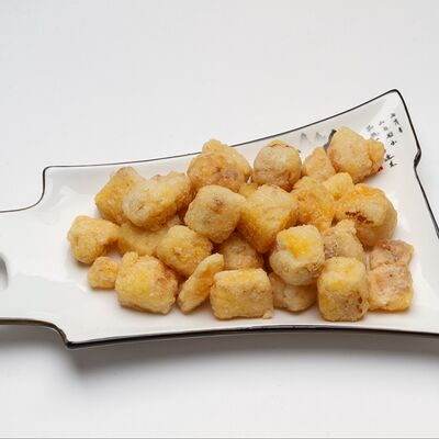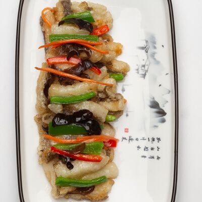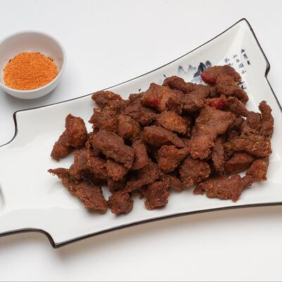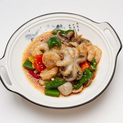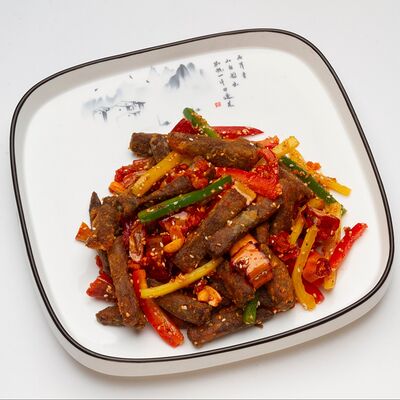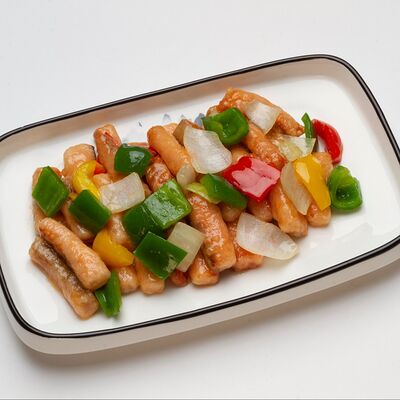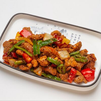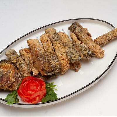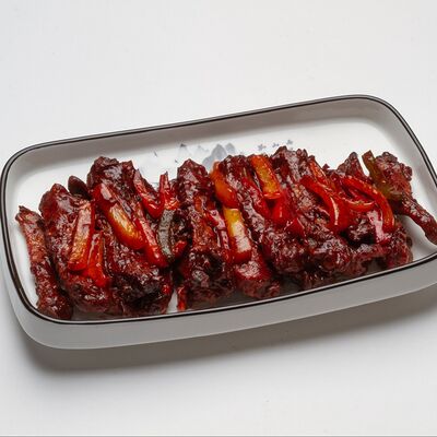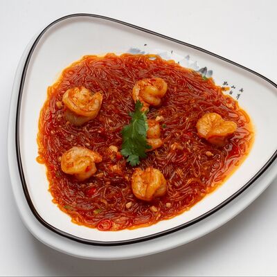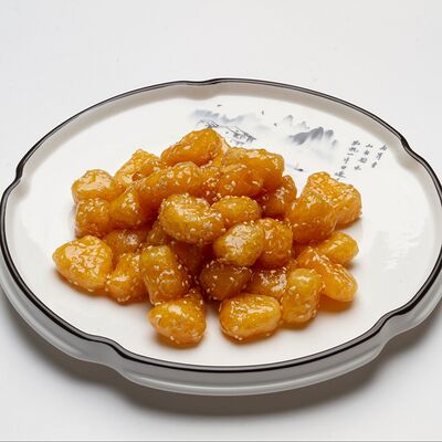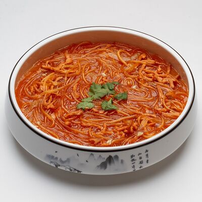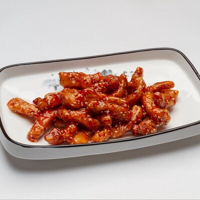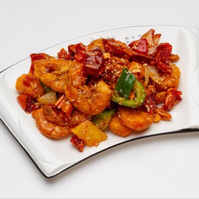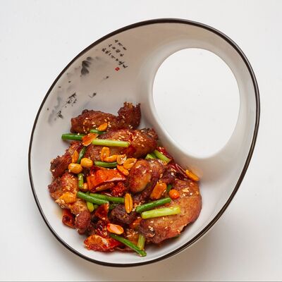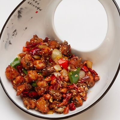 Тертый обжаренный картофель, огурец, лук, арахис, морковь, кинза