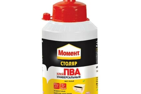 Универсальный клей МОМЕНТ Столяр ПВА на основе водной дисперсии ПВА, подходящий для всех пород дерева.