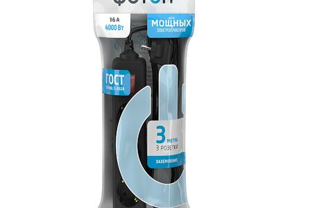 Удлинитель сетевой ФОТОН, 3м, 3 розетки, 16А доставка