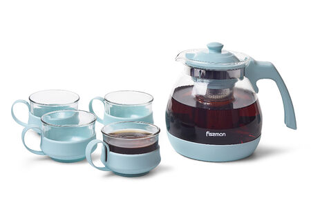 Чайный набор от компании FISSMAN изготовлен по современной технологии из особо прочного боросиликатного стекла. В набор входит заварочный чайник и 4 чашки. Для любителей зеленых или связанных цветущих чаев этот чайный набор станет поистине незаменимым, а также он обладает неоспоримыми преимуществами: • Надежность и долговечность - не темнеет, долго сохраняет свой презентабельный вид • Съемный фильтр из нержавеющей стали не позволит чаинкам попасть в чашку • Прозрачный корпус позволяет контролировать процесс приготовления напитка • Cтекло не впитывает посторонние запахи, поэтому вы сможете наслаждаться вкусом любимого напитка в гармонии со своими чувствами • Большая крышка для удобного наполнения и ухода • Благодаря красивой подарочной упаковке набор может стать отличным подарком • В набор входит заварочный чайник и 4 чашки • Устойчивость к загрязнению, легкость ухода • Безопасно для здоровья и окружающей среды