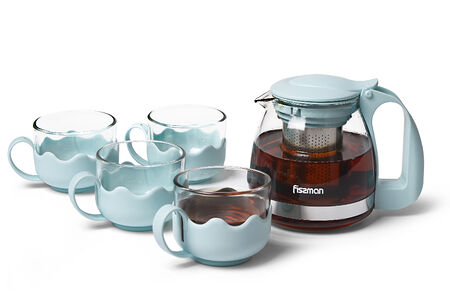Чайный набор от компании FISSMAN изготовлен по современной технологии из особо прочного боросиликатного стекла. В набор входит заварочный чайник и 4 чашки. Для любителей зеленых или связанных цветущих чаев этот чайный набор станет поистине незаменимым, а также он обладает неоспоримыми преимуществами: • Надежность и долговечность - не темнеет, долго сохраняет свой презентабельный вид • Съемный фильтр из нержавеющей стали не позволит чаинкам попасть в чашку • Прозрачный корпус позволяет контролировать процесс приготовления напитка • Cтекло не впитывает посторонние запахи, поэтому вы сможете наслаждаться вкусом любимого напитка в гармонии со своими чувствами • Большая крышка для удобного наполнения и ухода • Благодаря красивой подарочной упаковке набор может стать отличным подарком • В набор входит заварочный чайник и 4 чашки • Устойчивость к загрязнению, легкость ухода • Безопасно для здоровья и окружающей среды
