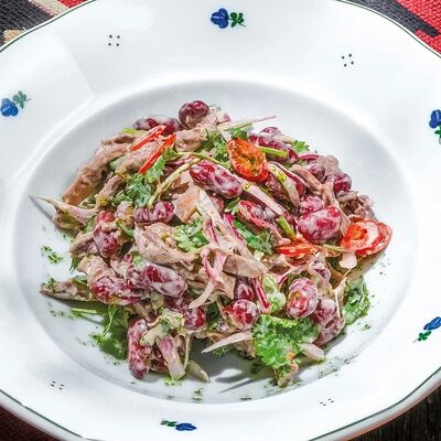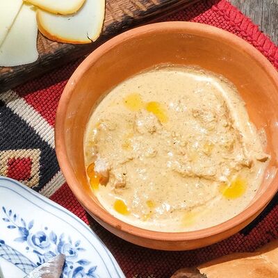Протертые грецкие орехи с чесноком, аджикой и отварной свеклой