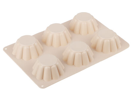 Форма для выпечки размером 25,5х18х3,5 см, разделенная на 6 круглых ячеек с ровным гладким дном и гофрированной стенкой, предназначена для выпечки изделий из теста в духовых шкафах. Форма изготовлена из высококачественного жаропрочного силикона. Силиконовая форма отличается стойкостью к высоким температурам, а также обладает антипригарными свойствами, за счет чего выпечка легко вынимается и не пригорает. Форма не прихотлива, ее легко мыть и удобно хранить.