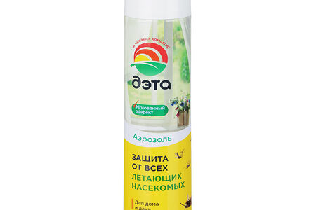 Аэрозоль от летающих насекомых ДЭТА обеспечивает эффективную защиту от всех видов летающих насекомых, включая комаров, мошек, пчел и мух. Действует мгновенно и безопасен для здоровья человека. Подходит для использования в помещении. Имеет приятный аромат луговых трав. Легко распыляется при путем нажатия на кнопку. Незаменим для дома и дачи.