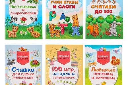 «Карманная книжечка» от Уральского издательского дома – это книги со скороговорками, стихами, играми и загадками для детей. Удобный размер позволяет положить книжку в карман или детский рюкзачок. В серии представлено 6 книг.