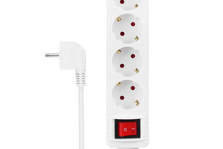 Универсальный электрический удлинитель с заземлением. Оснащен выключателем. Предназначен для нестационарного подключения потребителей к электрической сети переменного тока, на 4 евророзетки, с максимальной мощностью 3500Вт, длина шнура 3 метра.
