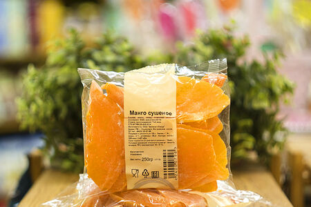 Состав: манго, сахар, лимонная кислота, консервант Е220, красители Е110. Пищевая ценность на ( 100 г ): белки -0,9 г, жиры - 2,1 г, углеводы -80,4 г Энергетическая ценность на ( 100 г ) :359 ккал Срок годности: 12 месяцев Условия хранения: относительная влажность воздуха 75% температура 18+/-5С