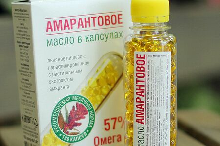 Амарантовое масло помогает усвоению кальция, улучшает состояние кожи, возвращая ей упругость и бархатистость. Особенности: защита от свободных радикалов и опухолевых процессов; сохраняет эластичность и упругость сосудов; молодая и бархатная кожа; способствует рассасыванию рубцов и спаек. Принимать по 2 капсулы 3 раза в день. Противопоказания: индивидуальная непереносимость.