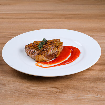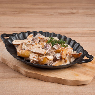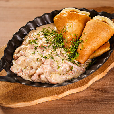 Отварные пельмени (свинина-говядина) со сметаной и бульоном