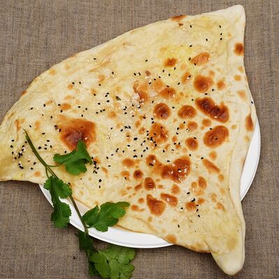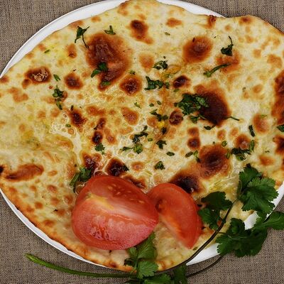 Лепешка из пшеничной муки с чесноком, приготовленная в тандури
