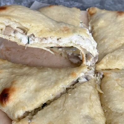 Основа для пирога, куриное филе, грибы, осетинский сыр, пряности (32 см)