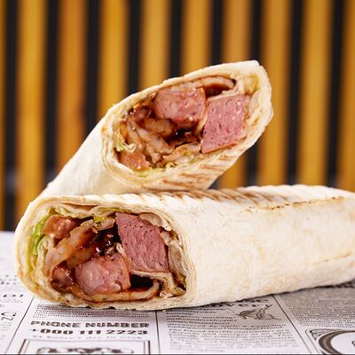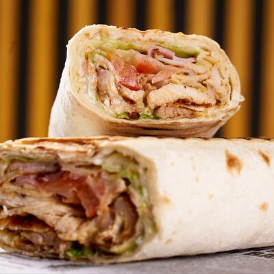 Сочная курица, приготовленная на гриле, армянский лаваш, фирменный соус, маринованный огурчик, помидор, капуста