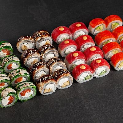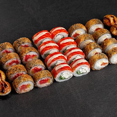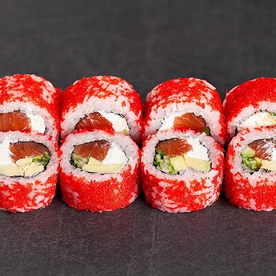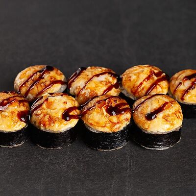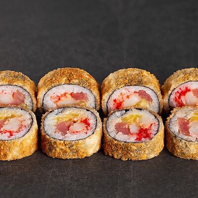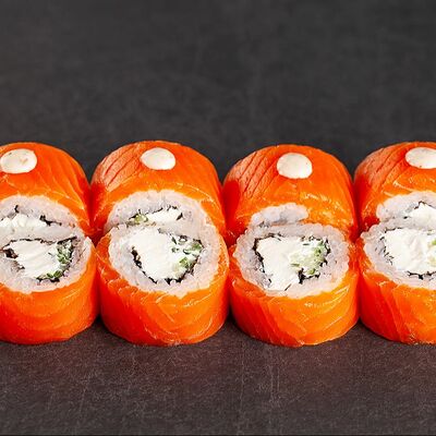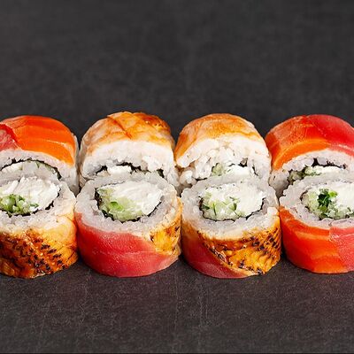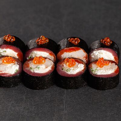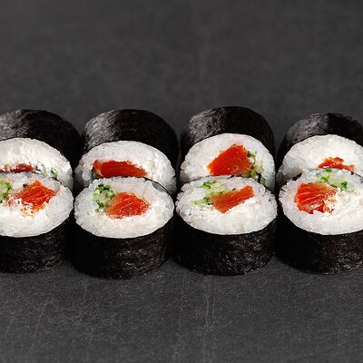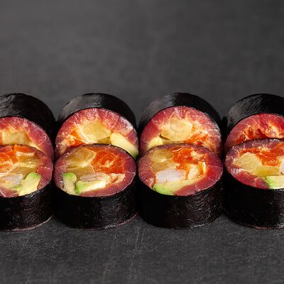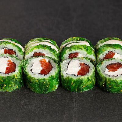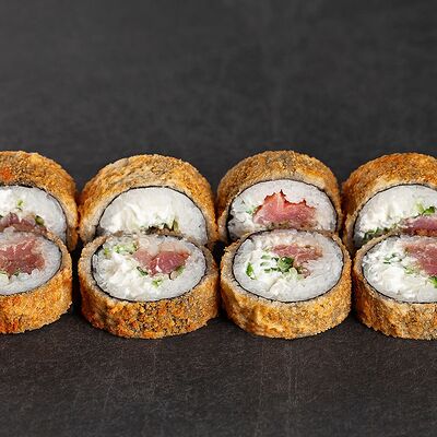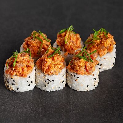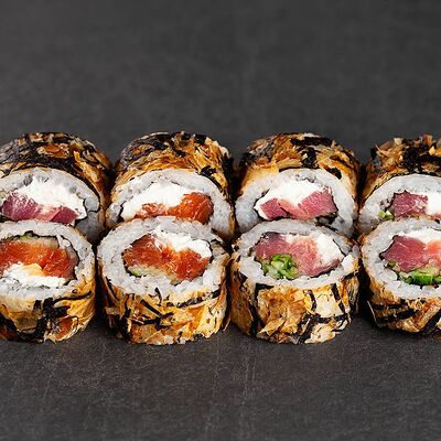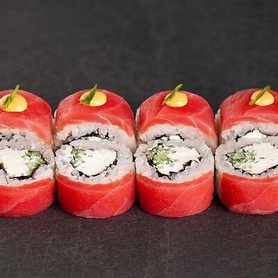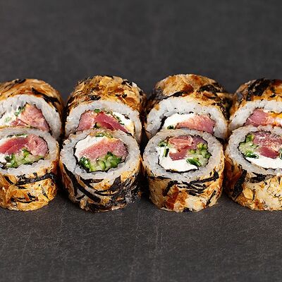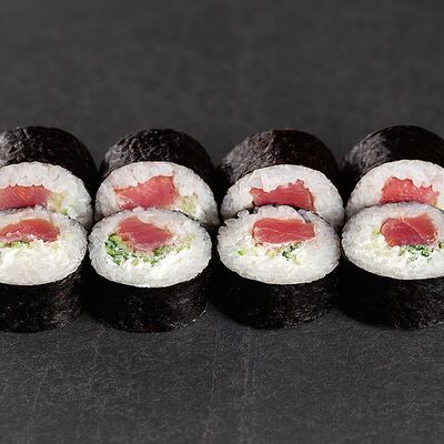 Тунец, сыр, огурец, лук зеленый, спайси, рис, нори
