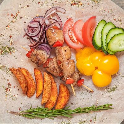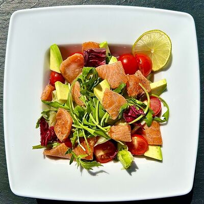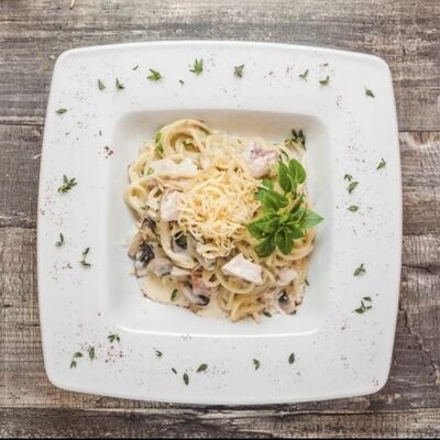 Филе куриное, салат айсберг, капуста пекинская, томаты черри, соус цезарь, сыр пармезан