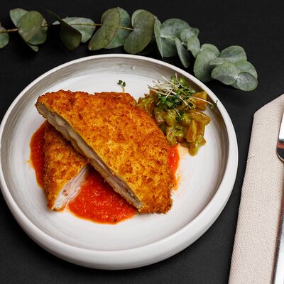 Шницель по Милански с соусом Цезарь
