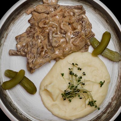 Шницель по Милански с соусом Цезарь доставка