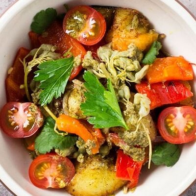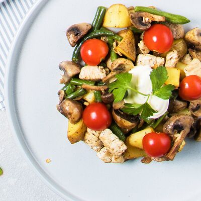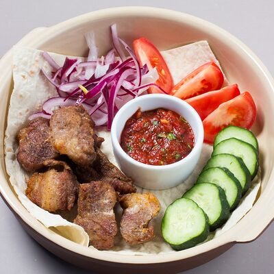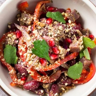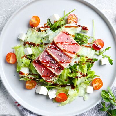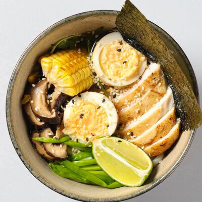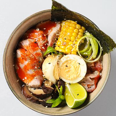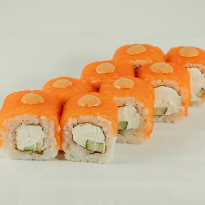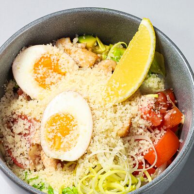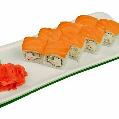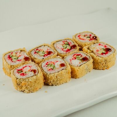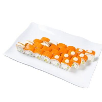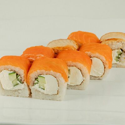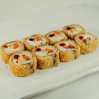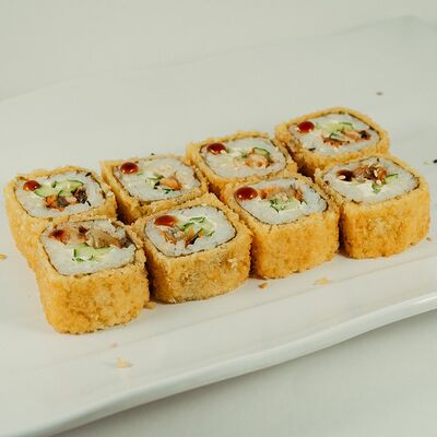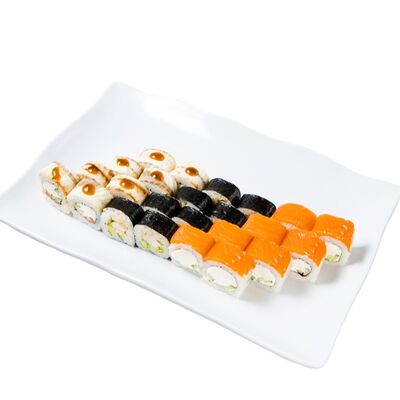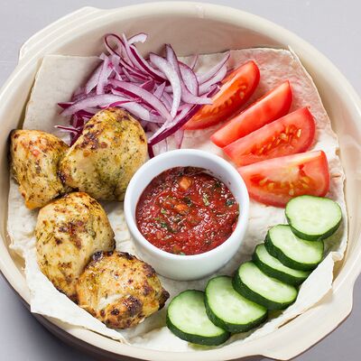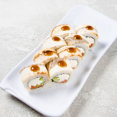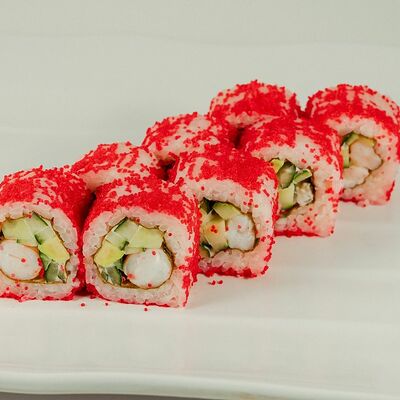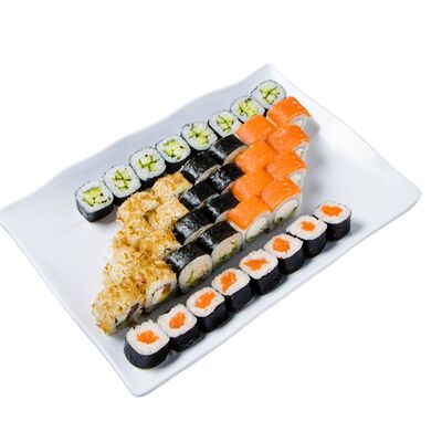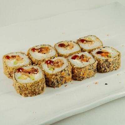 Рис, соевый соус, куриное филе, айсберг, помидоры черри, огурцы, нори, кунжут, водоросли чука, ореховый соус, соус Терияки