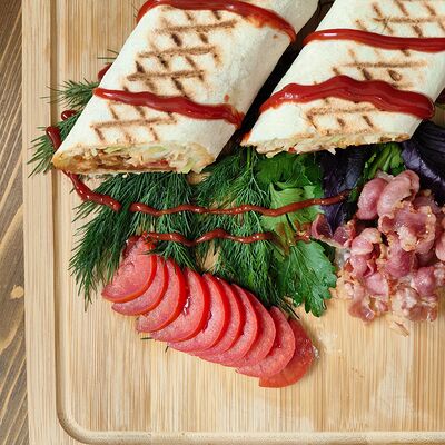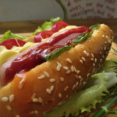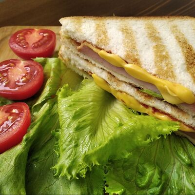 Хлеб Харрис, салат айсберг, ветчина из свинины, сыр чеддер, помидоры, соус томатный, соус ранч