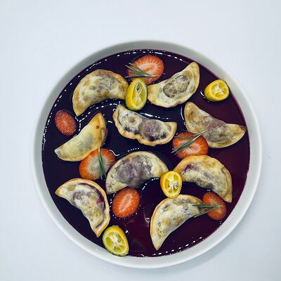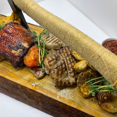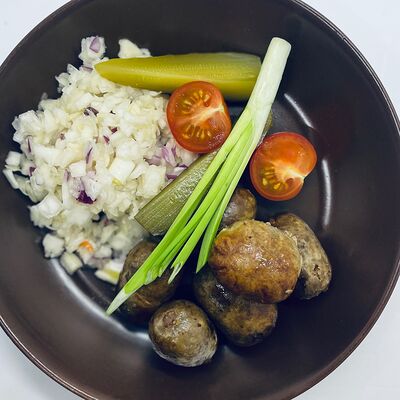 Перец красный, горчица зернистая, вино выпаренное столовое красное, зелень, лук красный, огурчики соленые
