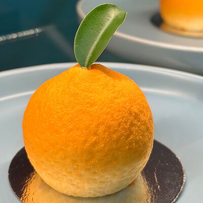 Морковный бисквит с апельсином и корицей, экзотик-крем, апельсиновый мусс на маскарпоне