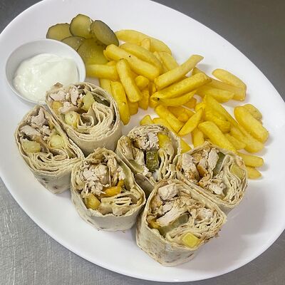Куриное филе, макаронные изделия, зелень