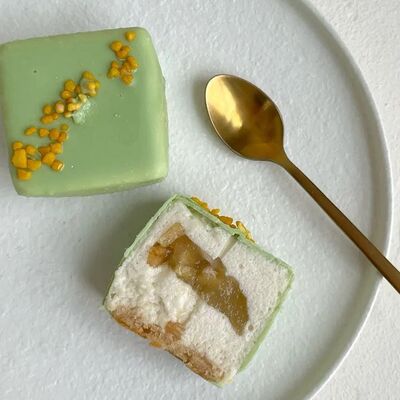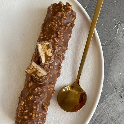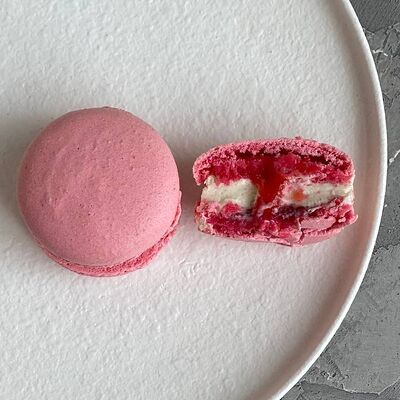 Миндальные крышечки, крем на молочном шоколаде, начинка из соленой карамели с арахисом
