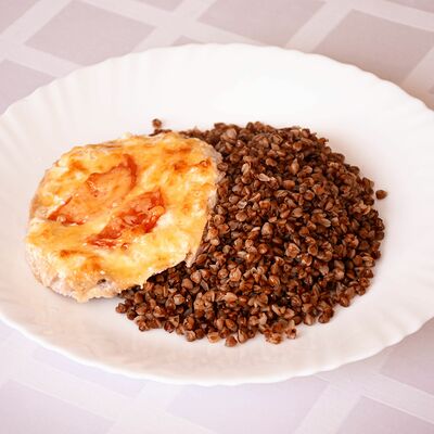 Свинина, репчатый лук, сыр, помидоры, майонез