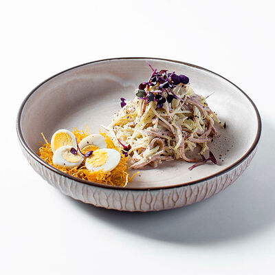 Витаминный лимонад, на основе апельсинового фреша, клубничного пюре и клубничного сиропа. Украшается дольками апельсина