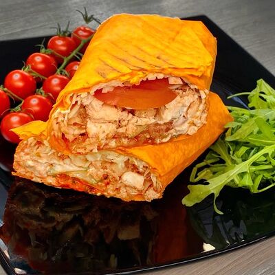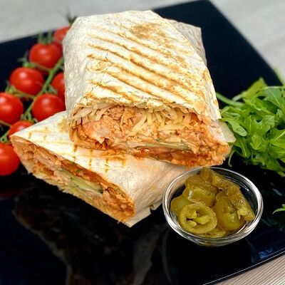 Пита, куриное филе, помидоры, огурцы, соус (томатный, сырный, чесночный), сыр