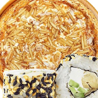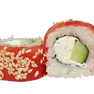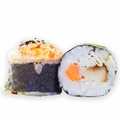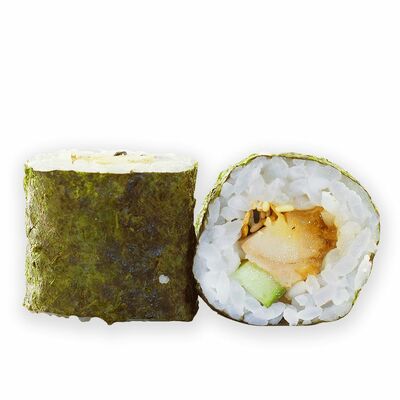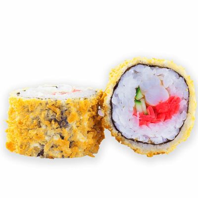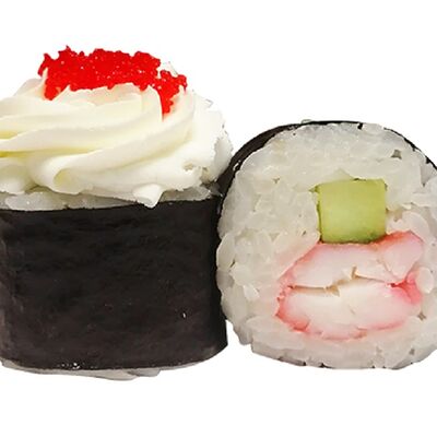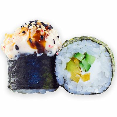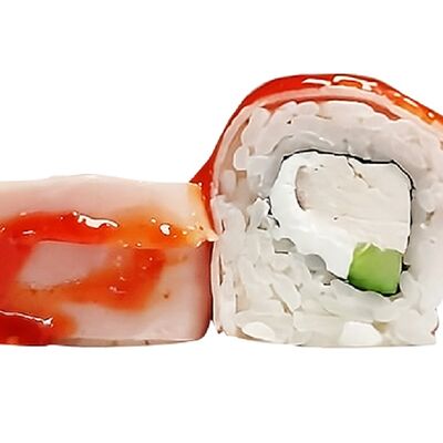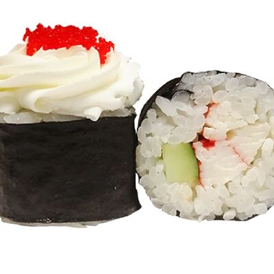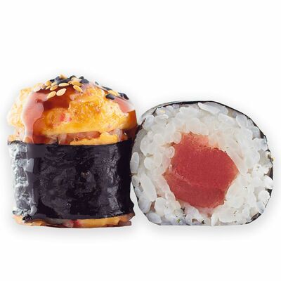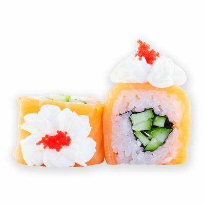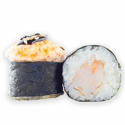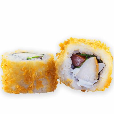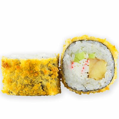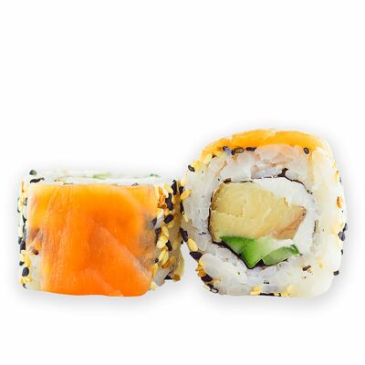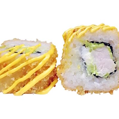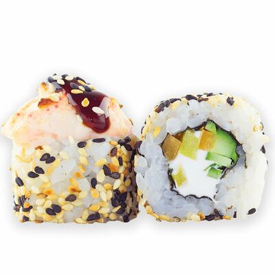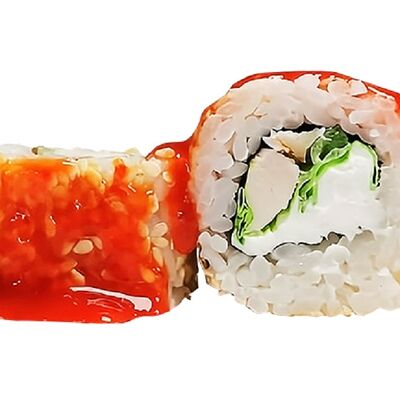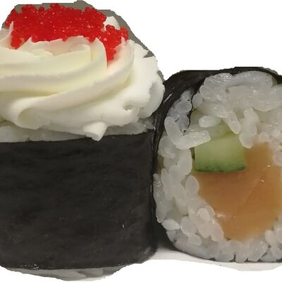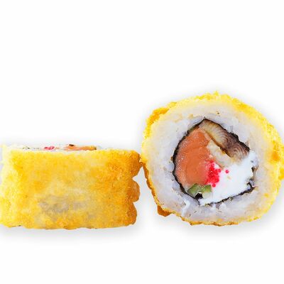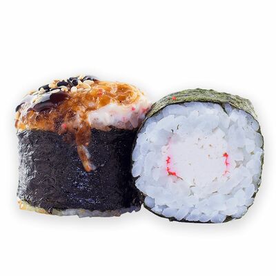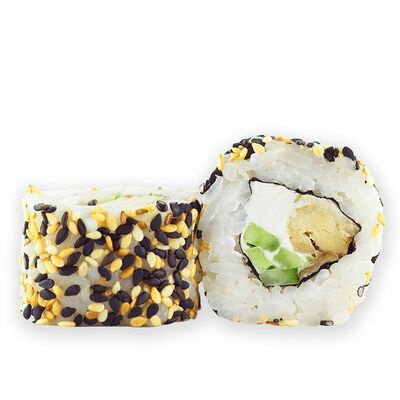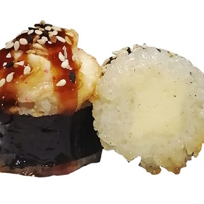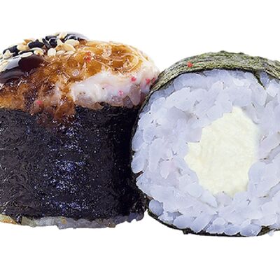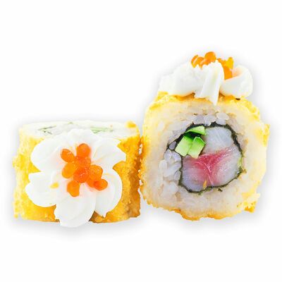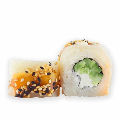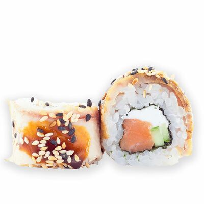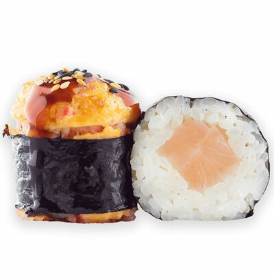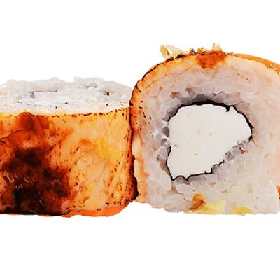 Рис, нори, окунь, сырная шапочка, соус унаги, кунжут - 8 шт. В комплект :входит имбирь васаби соевый соус=0)