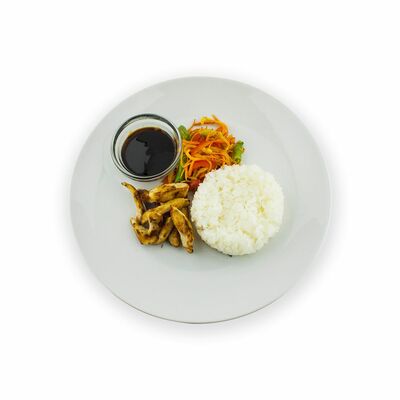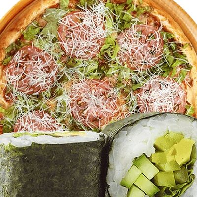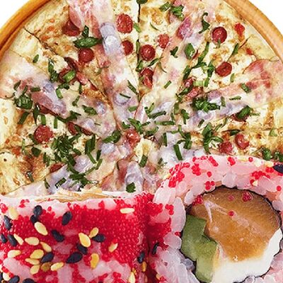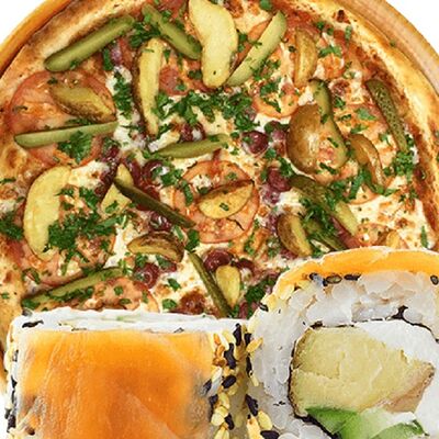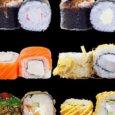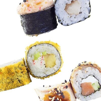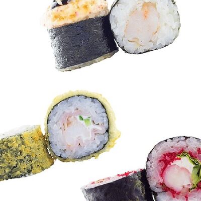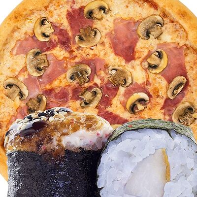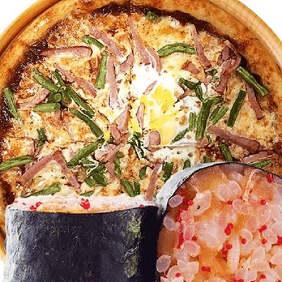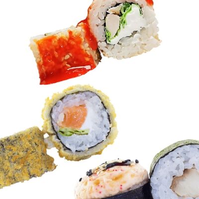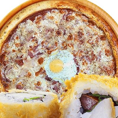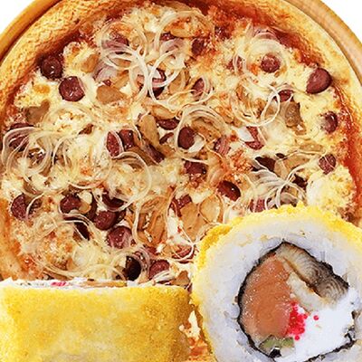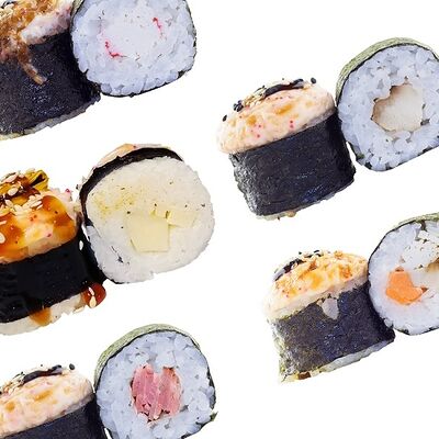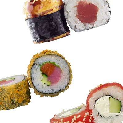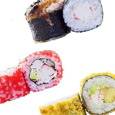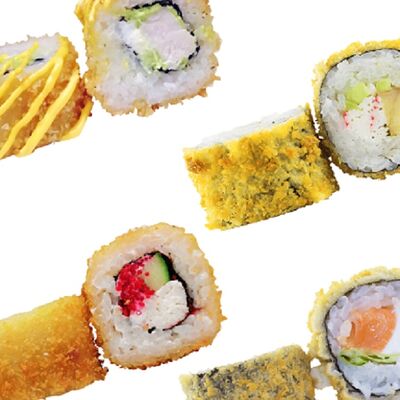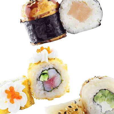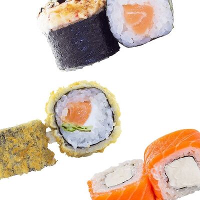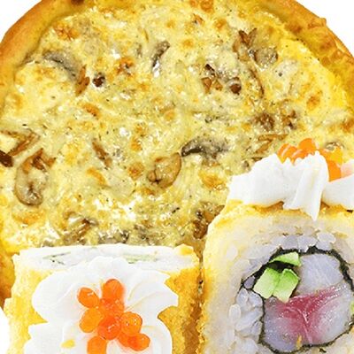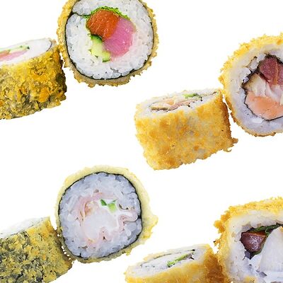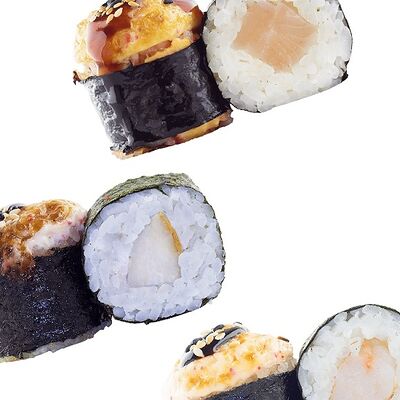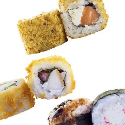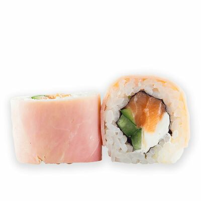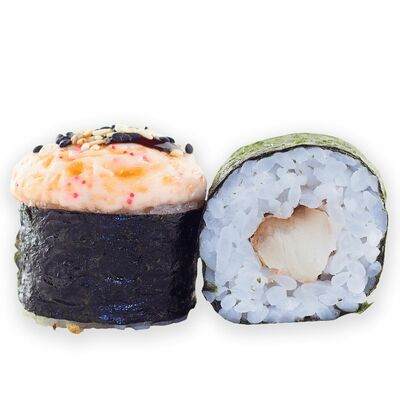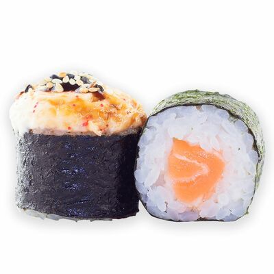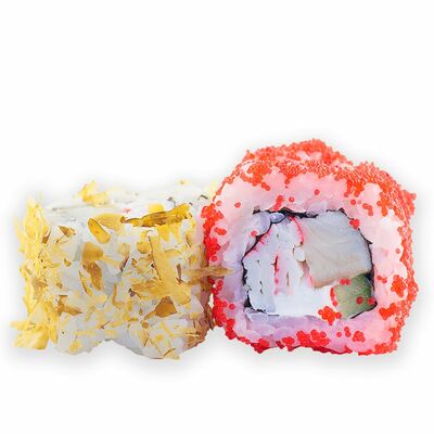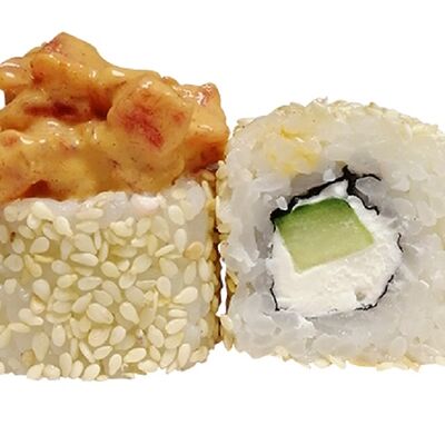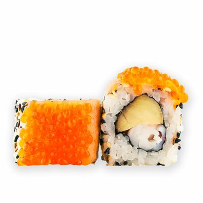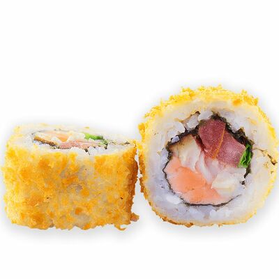 Рис, нори, окунь, сырная шапочка, соус унаги, кунжут - 8 шт. В комплект :входит имбирь васаби соевый соус=0)