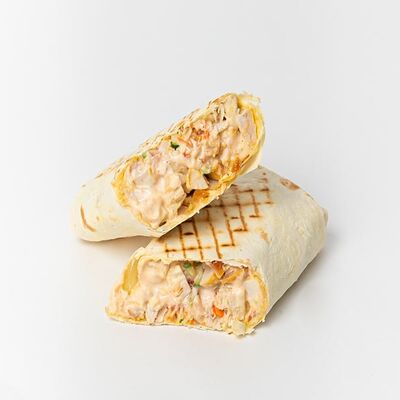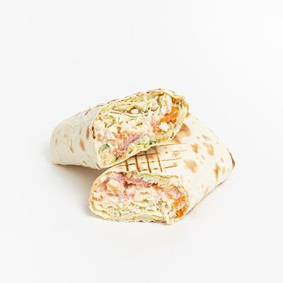 Ароматный шашлык из свинины, свежие огурцы, помидоры, капуста, морковь, фирменный соус и хрустящий лаваш