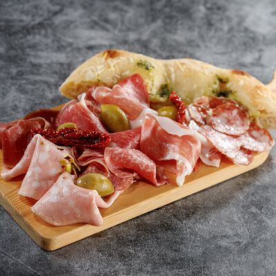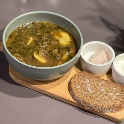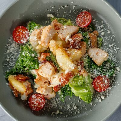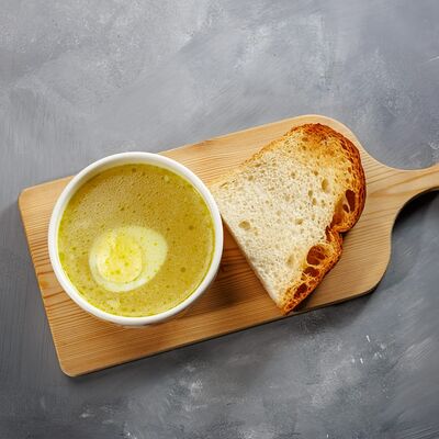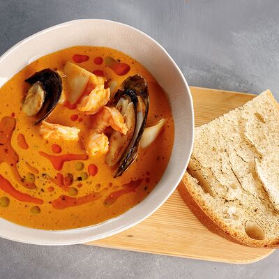 Картофель, лук, морковь, бульон куриный, форель, сыр плавленый, чиабатта