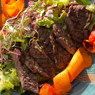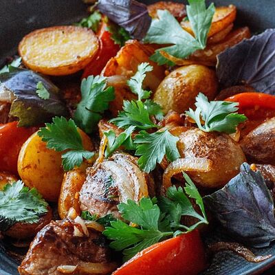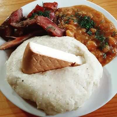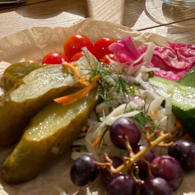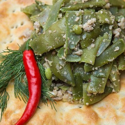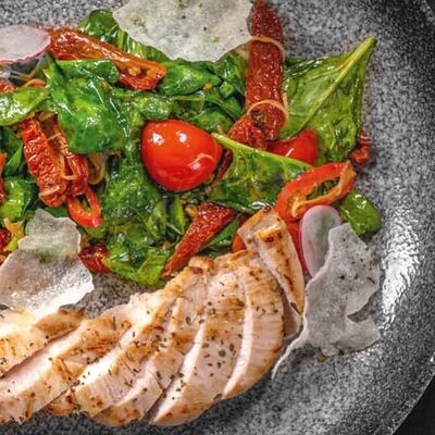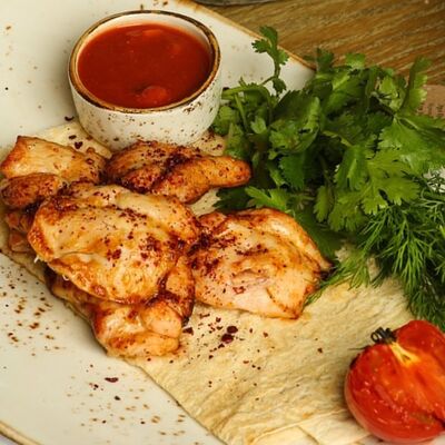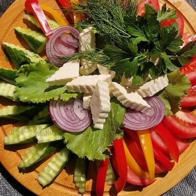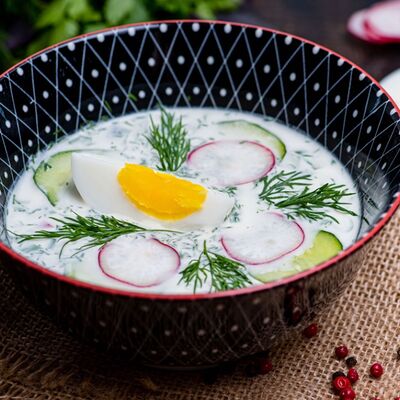 Куриное филе, яйцо, картошка, кефир, минеральная вода, зелень, редиска, сметана