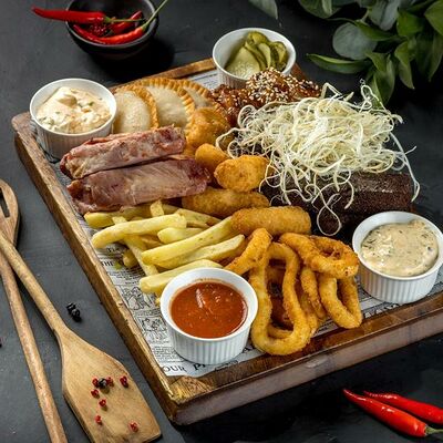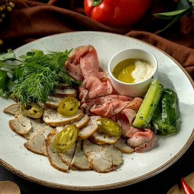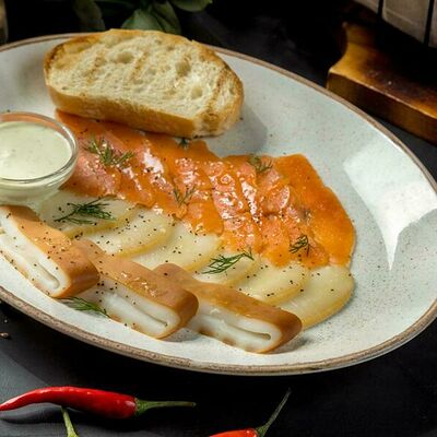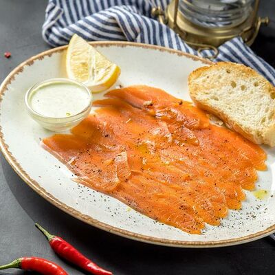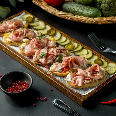 Лосось с/с, масляная х/к, кальмар с/с, чиабатта, маслины, крем гравлакс, салат лолло-россо, салат айсберг