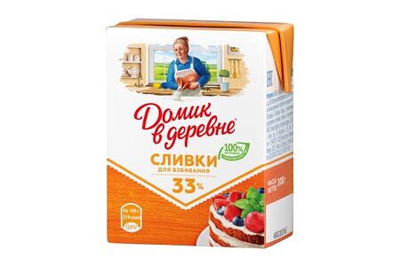 Сливки Домик в Деревне 33% 200гр Стерилизованные т/п доставка