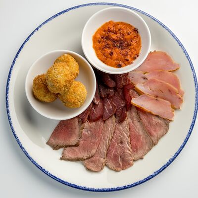 Ростбиф, вяленая телятина, вяленая индейка, соус харисса, утка в панировке