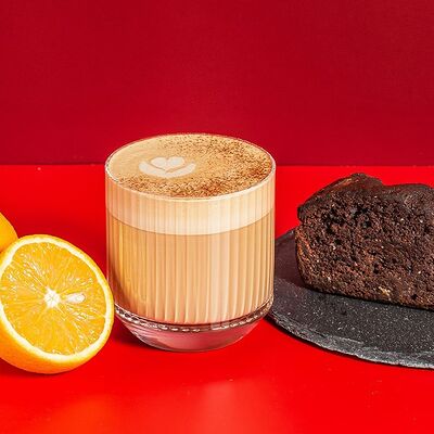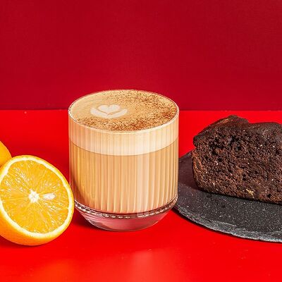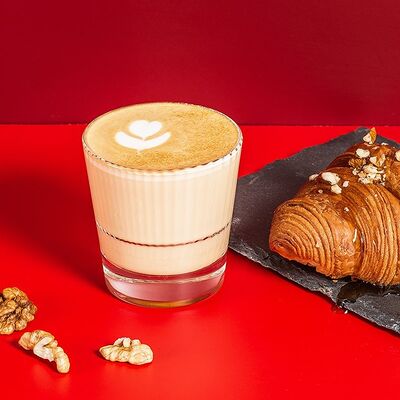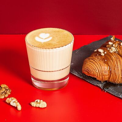 Эспрессо, топпинг кленово-ореховый круассан, молоко, посыпка кориандр