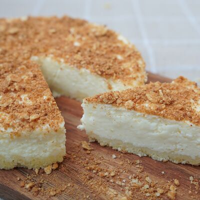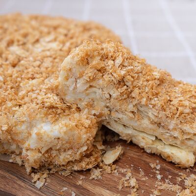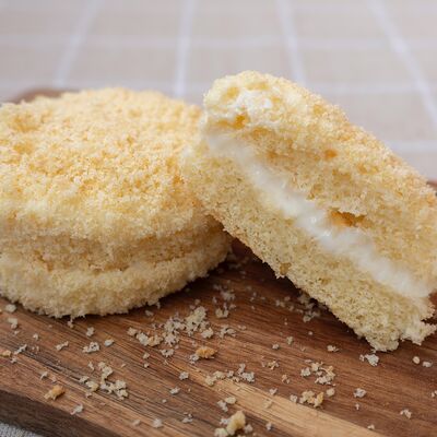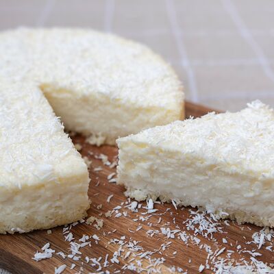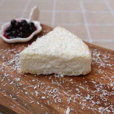 Яйца, сахар, мука пшеничная высший сорт, маргарин для песочного теста, разрыхлитель, творожный сыр (крем-чиз), молоко, сливки, кукурузный крахмал, кокосовое молоко, кокосовая стружка, лимонная кислота, соль
