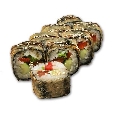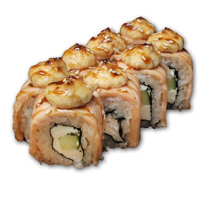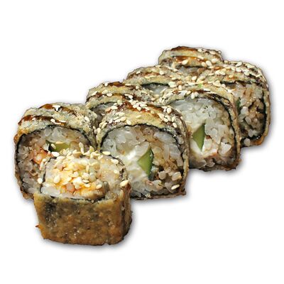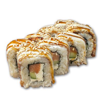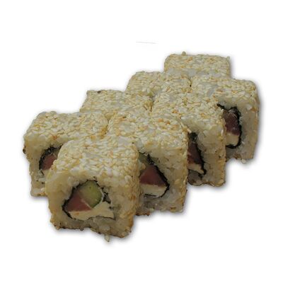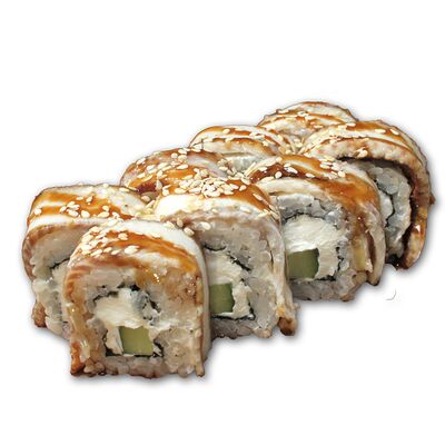 Тунец, сыр творожный, соус унаги, кунжут. Соевый соус, имбирь, васаби приобретаются отдельно в разделе соусы
