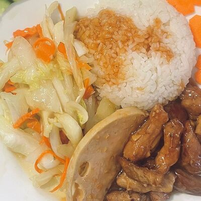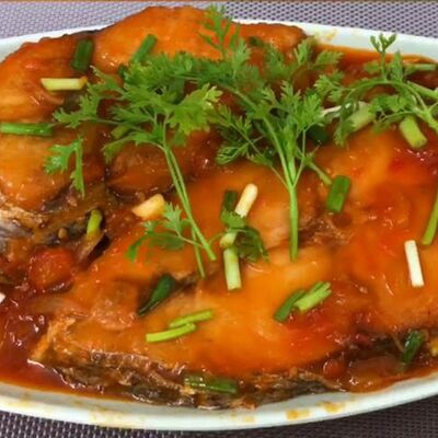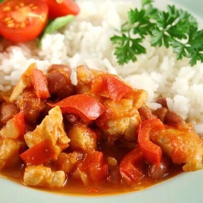 Филе рыбы с овощами в томатном пасте, яйцо. Подается с рисом