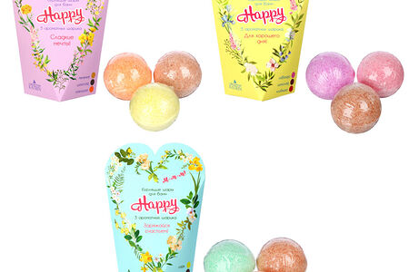 Набор бурлящих шаров для ванн happy 3 дизайна, 3шт по 40г доставка